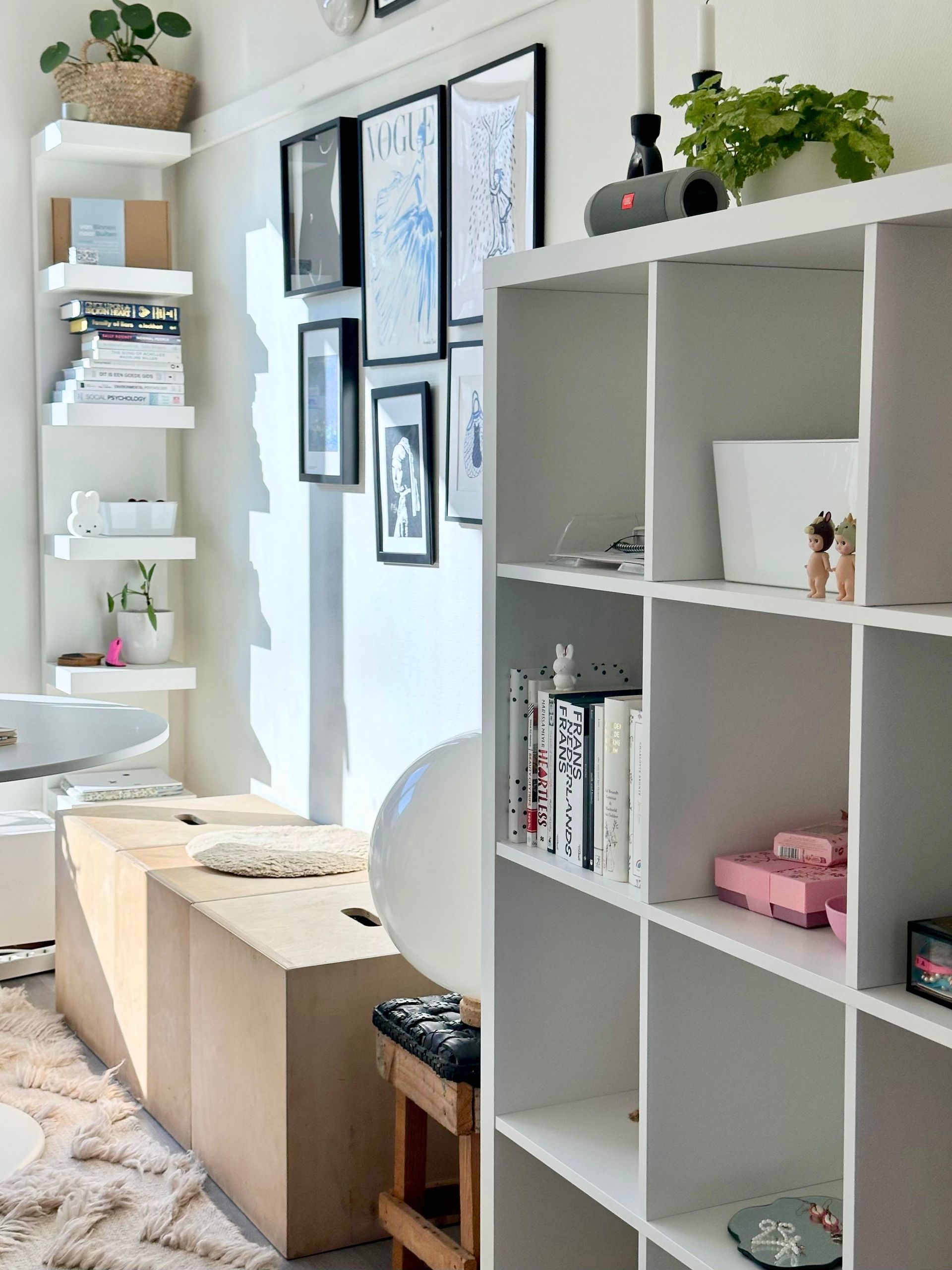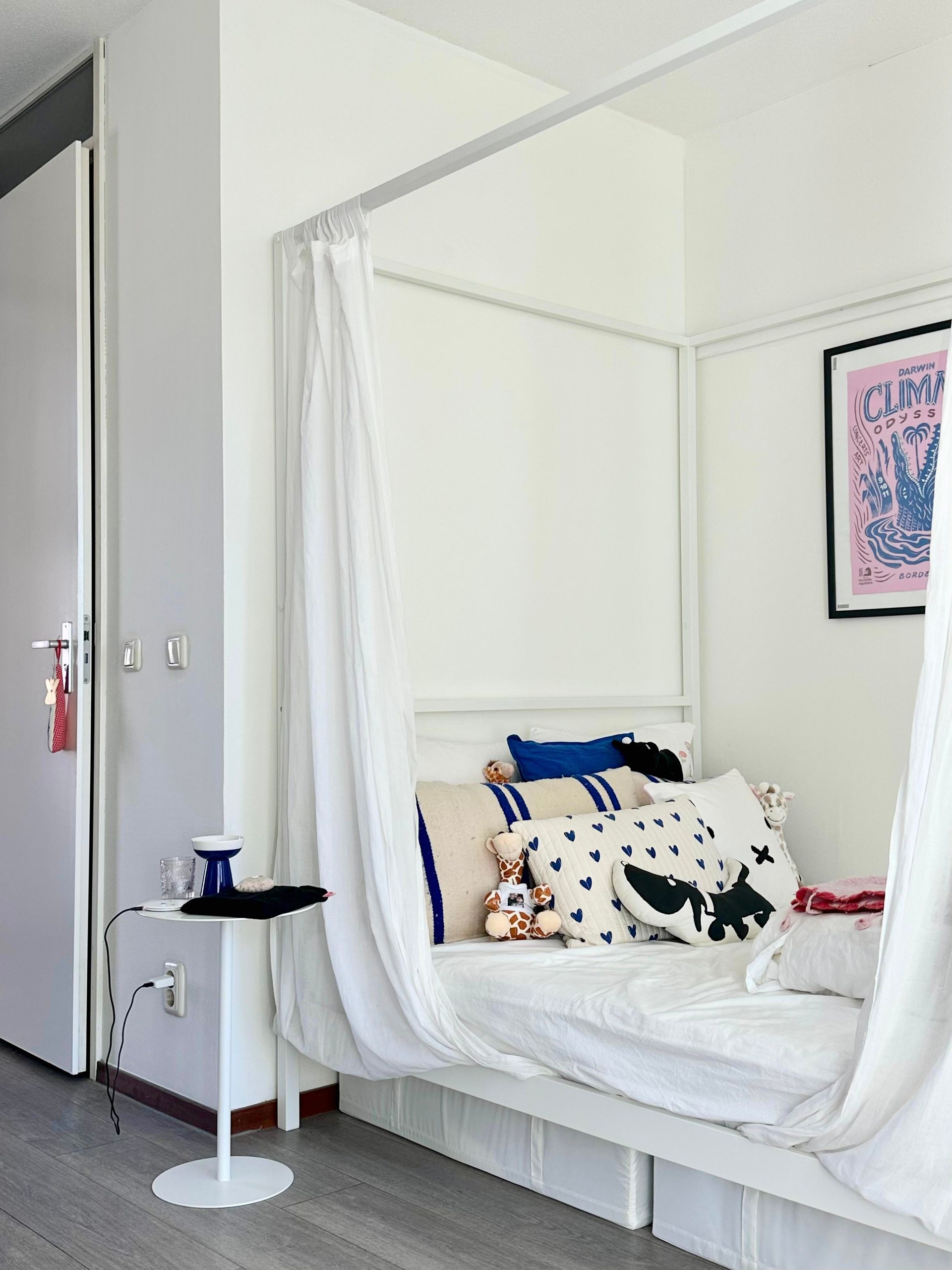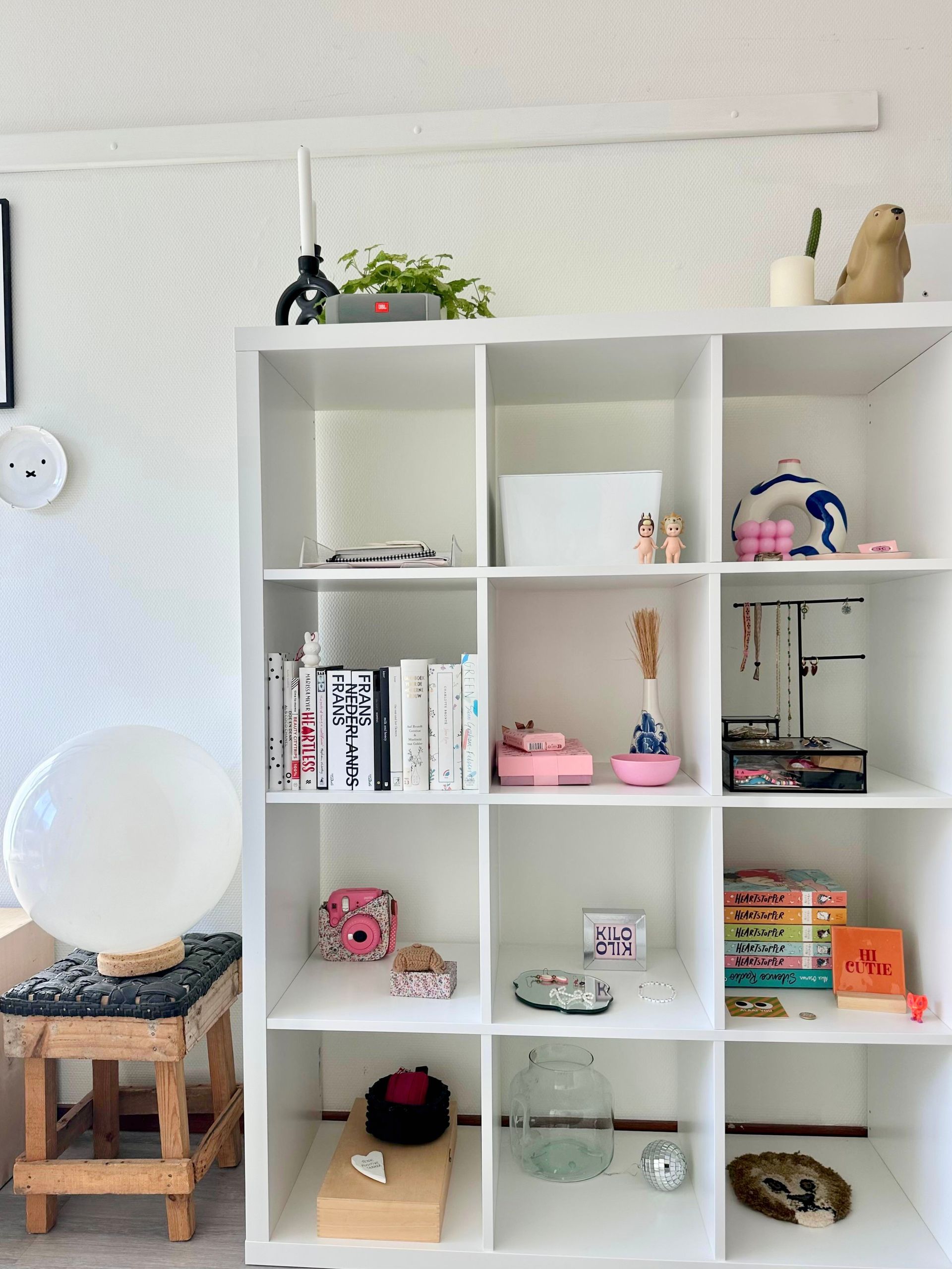 De grootste uitdaging van mijn studio is dat ik echt in één ruimte leef en dat al mijn spullen daarin moeten passen. Het was dus even puzzelen waar ik alles praktisch kon neerzetten en opbergen. Toch vond ik dat puzzelen ook heel leuk. Het gaf me de kans om creatief na te denken over de indeling en uiteindelijk heb ik een heel fijn en gezellig huisje kunnen creëren. Stiekem heb ik ook helemaal niet meer ruimte nodig voor mezelf.