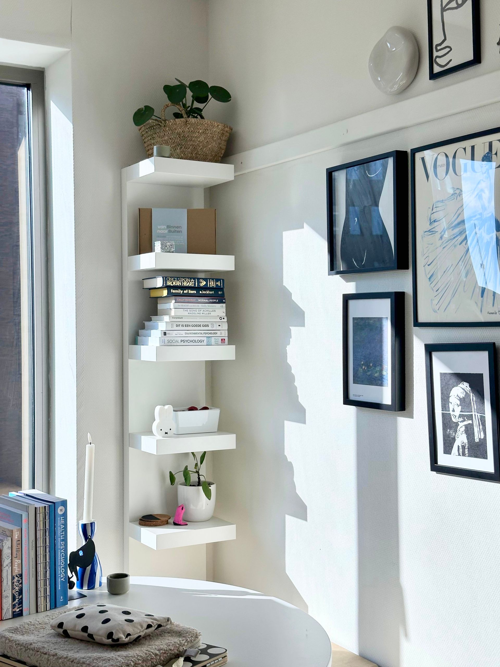 Mijn favoriete item op mijn kamer is denk ik mijn LACK wandrek van de IKEA bij het raam. Dit rek gaat al 3 kamers mee en vind altijd wel zijn plekje. Het is super handig omdat je er veel decoratie en boeken op kwijt kunt, maar hij ziet er daarnaast ook heel leuk uit.