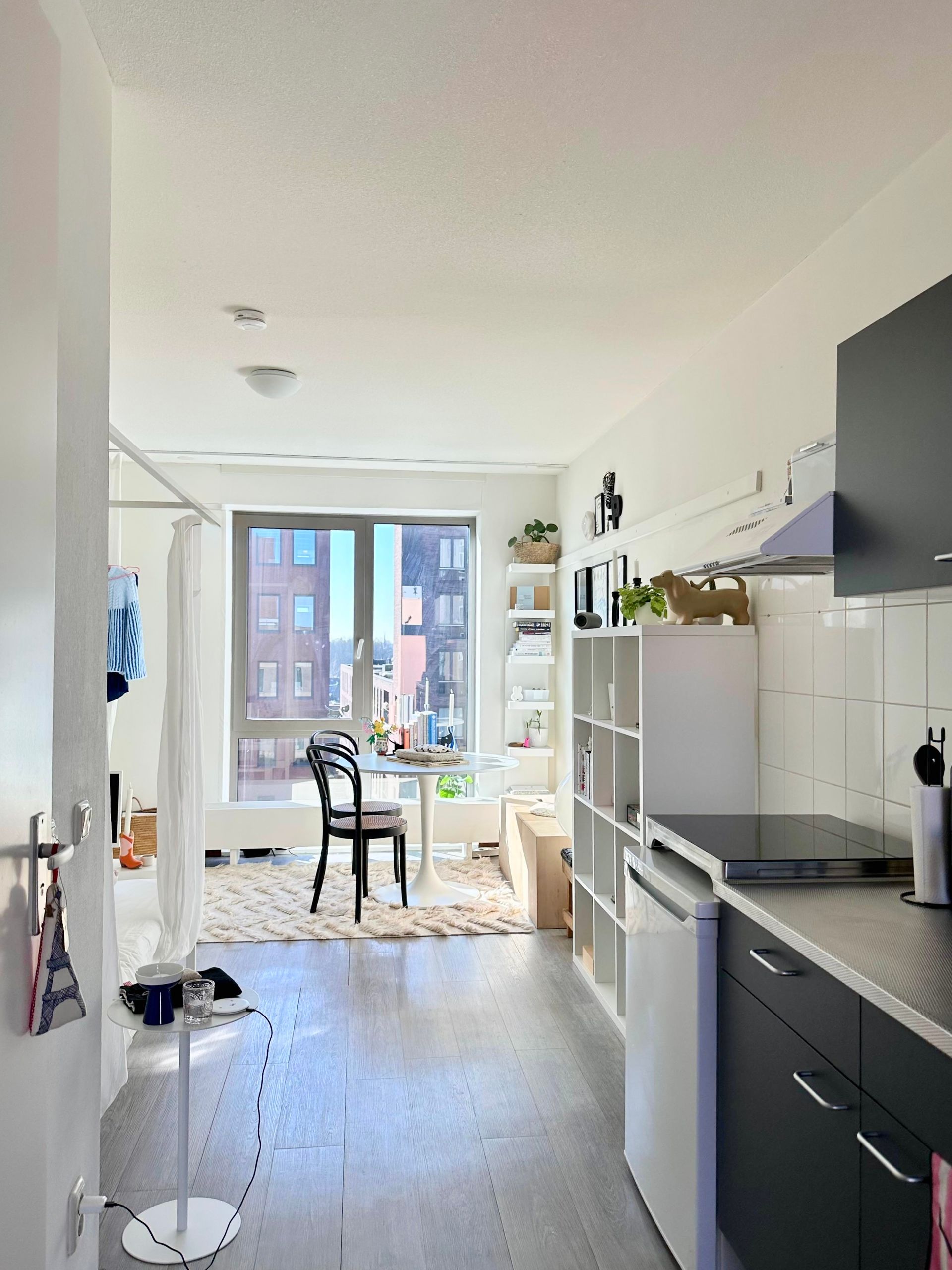 Toen na een half jaar een plekje in het verenigingshuis vrijkwam van de sportvereniging waar ik lid van was, ben ik daarnaartoe verhuisd. Ik heb hier een tijdje gewoond, maar had een heel klein kamertje en helaas geen mogelijkheid om door te schuiven naar een grotere. Toen ik terugkwam uit Noorwegen van mijn minor in december 2025, besloot ik niet meer terug te willen naar de kleine kamer en vond ik een studio via SHH in het studentencomplex Talent Square. Ik stond al wat langer ingeschreven en had daarom het geluk er snel in te kunnen trekken. Ik woon hier net een paar weekjes en ben erg blij!